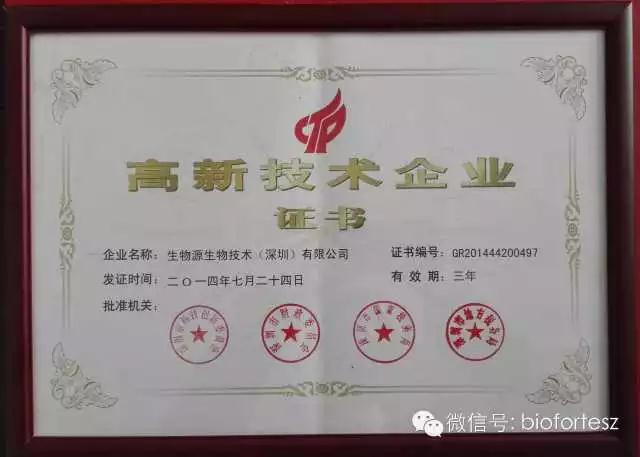 热烈祝贺生物源生物技术(深圳)有限公司获国家高新技术企业荣誉称号阅读次数 [5379] 发布时间 :2014-12-06